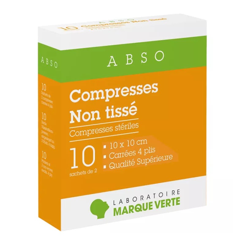 Marque Verte Abso Compresses Non-Woven Sterile Green Brand, box of 25, 10 cm x 10 cm