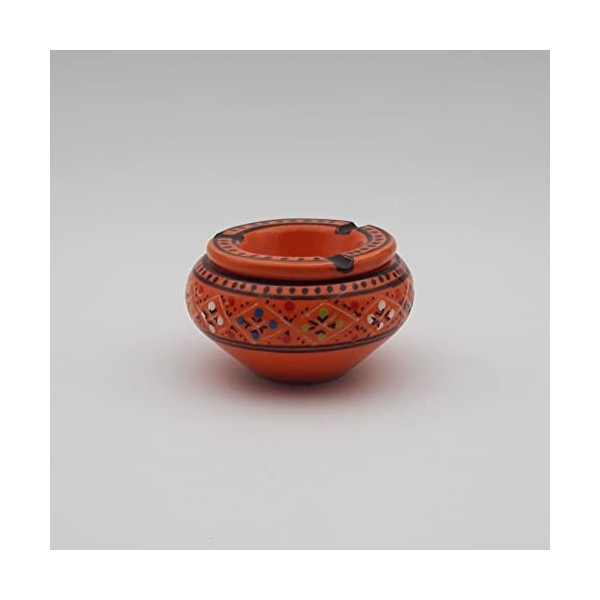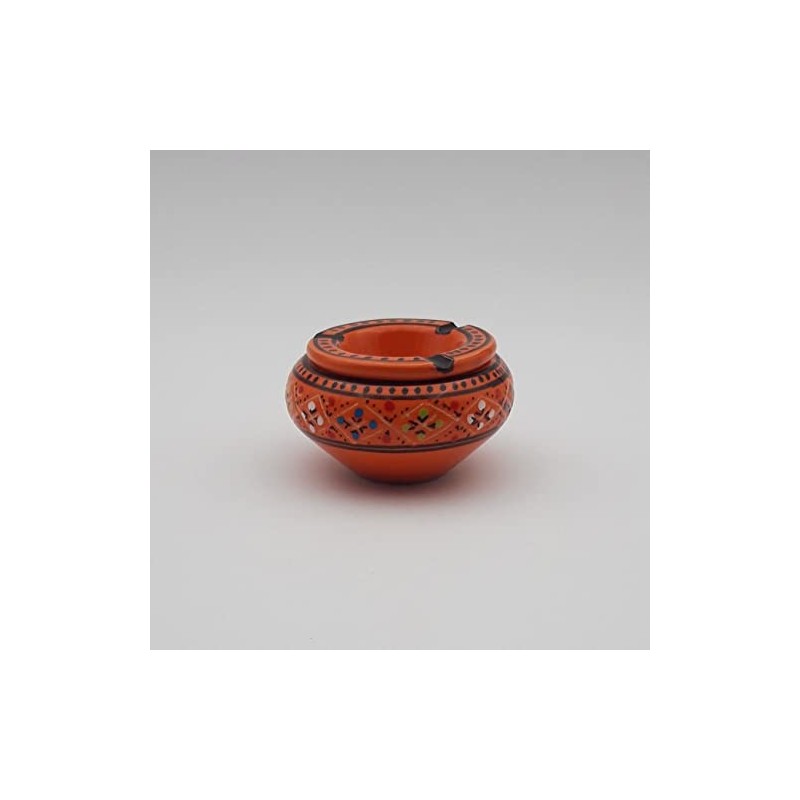 - Hand decorated by a Tunisian artisan using a needle, you can extinguish your cigarettes without persistent smoke. It will decorate your table or office or even a small wall in front of your door or in the garden. Inexpensive ashtray with a modern and worked design. Diameter: 10 cm. Height: 5 cm. Dishwasher-safe
