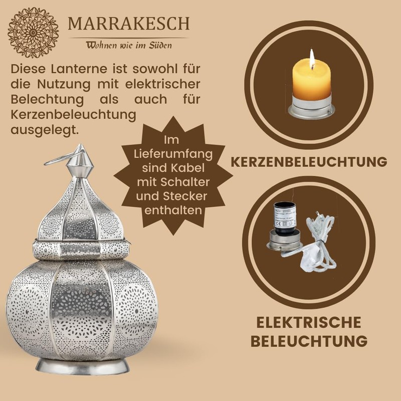 Marrakech Lamp and Lantern in One Metal 30 cm Large Table Lamp Lantern Lamisa Silver Oriental Decoration