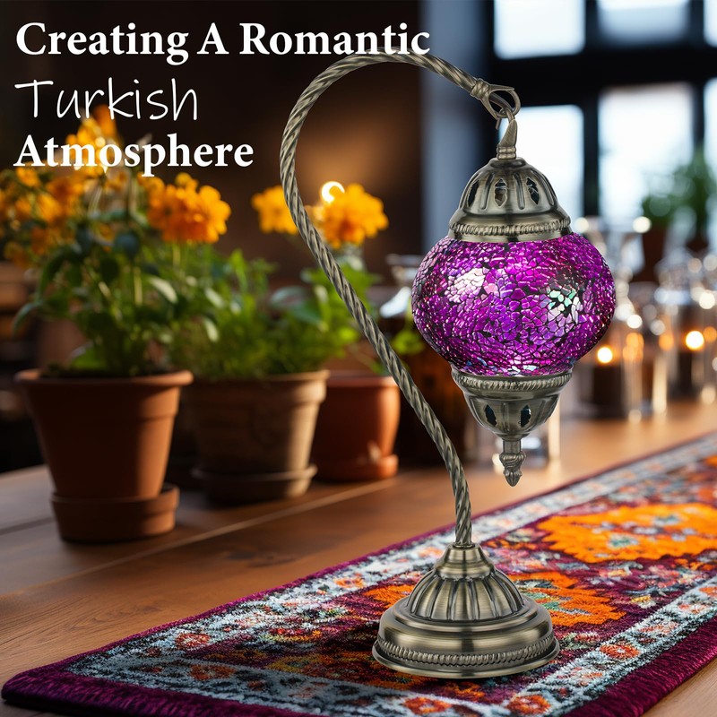 - 【SPECIAL DESIGN】 - The swan neck bodies have been melted and formed at high temperatures. Multicoloured glass shards are attached to globes and mosaic glass lampshades are paired with bronze metal swan neck bodies. The Turkish table lamp will make a big difference in your bedroom or living room.