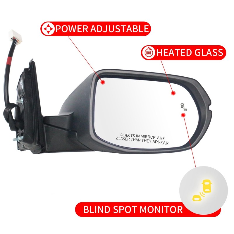 - DIRECT REPLACEMENT: Mirror Assembly compatible with 2017 2018 2019 2021 2022 for Honda CRV Passenger Side (RH) / 9 Pin Harness /Power Adjustable Glass/Manual Fold (Without power fold)/Rear Vier Mirror With Signal Light/Heat/OE-Style Replacement,Blind Spot Detection/WHITE