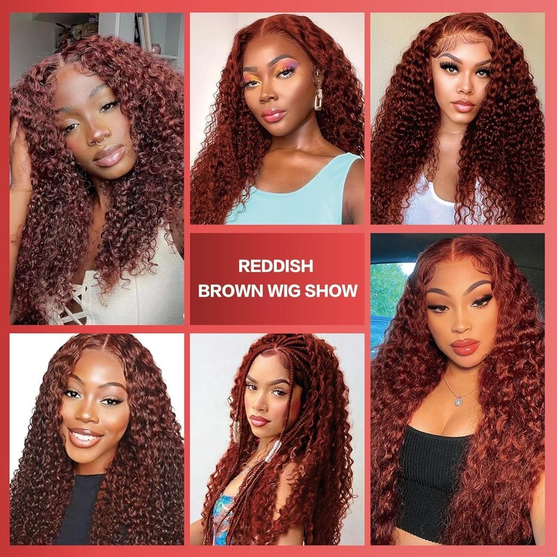 MARRY MOON Mongolian Reddish Brown 5X5 Deep Wave Lace Front Wigs Human Hair Auburn Brown Wear Go Wig Water Wave Wigs for Women Deep Curly Human Hair Wigs 180% Density 20 Inch