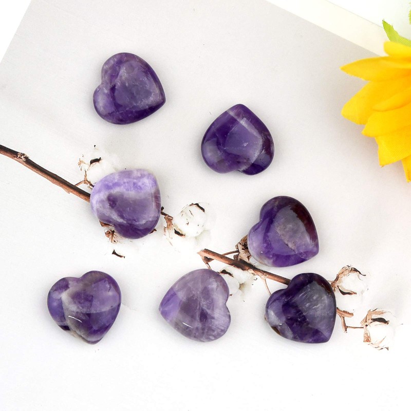 Product Specifications:Quantity: 15 pcs Healing Crystal StonesMaterial: Natural CrystalSize: 20mm*20mm*7mm (0.8inch)Weight: Approx. 59gShape: Heart ShapeColor: PurpleChakra: Heart ChakraStyle: Polished & SmoothFunction:Used to relax or relieve anxiety. Increased meditation helps restore mind, body and spirit. Strengthen the heart so that energy flows through the heart chakras appropriately.Instructions:Hold the palm stones between your index finger and thumb, then gently move your thumb backwards and forth across the stones.Note:Every piece stone is natural and unique, the actual color, sizes and shapes are a bit different from each other. Please understand it!