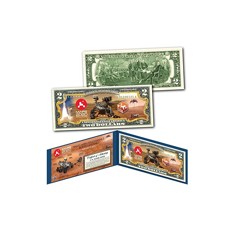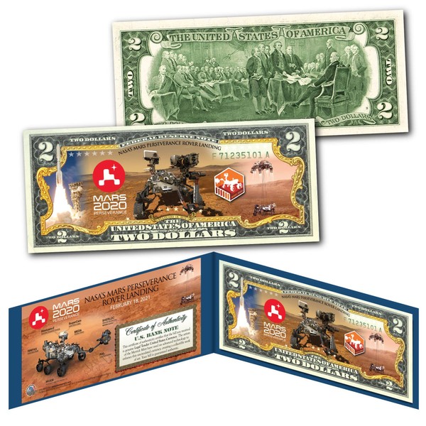 Mars 2020 Perseverance Rover Landing NASA Space Program Uncirculated Two Dollar Bill Special Edition Collectible Display Holder and Certificate