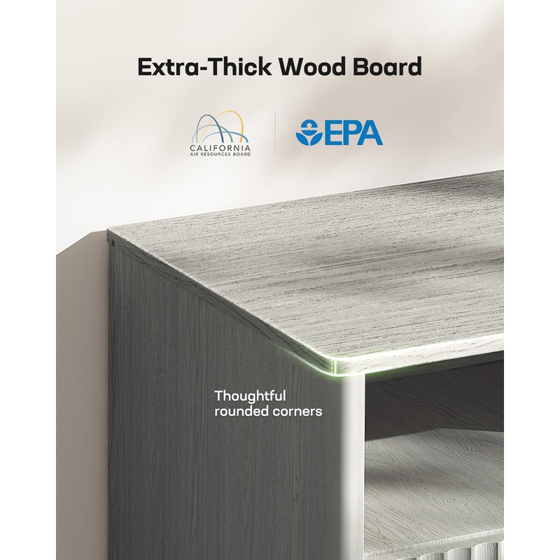 • Durable P2 Engineered Wood: Crafted from sturdy P2 engineered wood, this TV stand for living room combines strength and style. The modern design of entertainment center features rounded corners for added security and fluted panels for a sleek, contemporary look. This thoughtful design is not only practical but also versatile, effortlessly complementing any living space décor.
