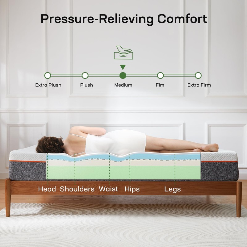 - Pressure-Relieving Breathability - The advanced technology of this memory foam twin mattress maximizes ventilation while features a medium-firm feel that cradles your body to offer superior pressure relief and optimal support.