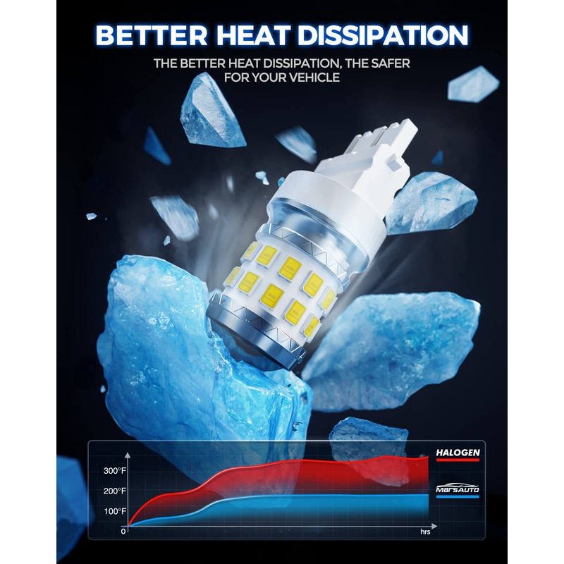 • Great Performance: the high precision constant current of 3157 brake light bulb, built-in intelligent IC driver, no UV light emission, no flickering, no IR radiation. Only 1/4 energy consumption of original bulb but 6 times brighter with 5.5W per 3157 bulb.