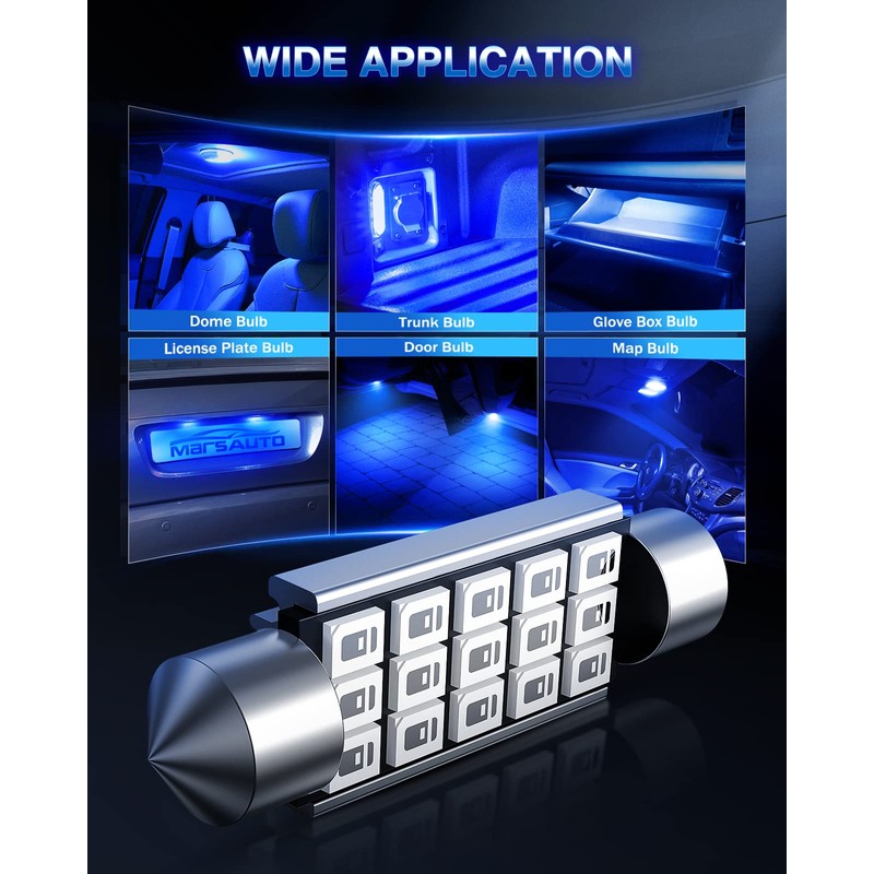 Marsauto Marsauto 578 Led Map Light Dome Bulb Blue 211-2 212-2 Led Festoon Bulb 41mm 42mm 569 6411 6451 Car Light 1.59inch (Pack of 4)