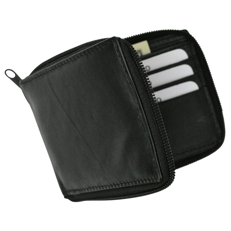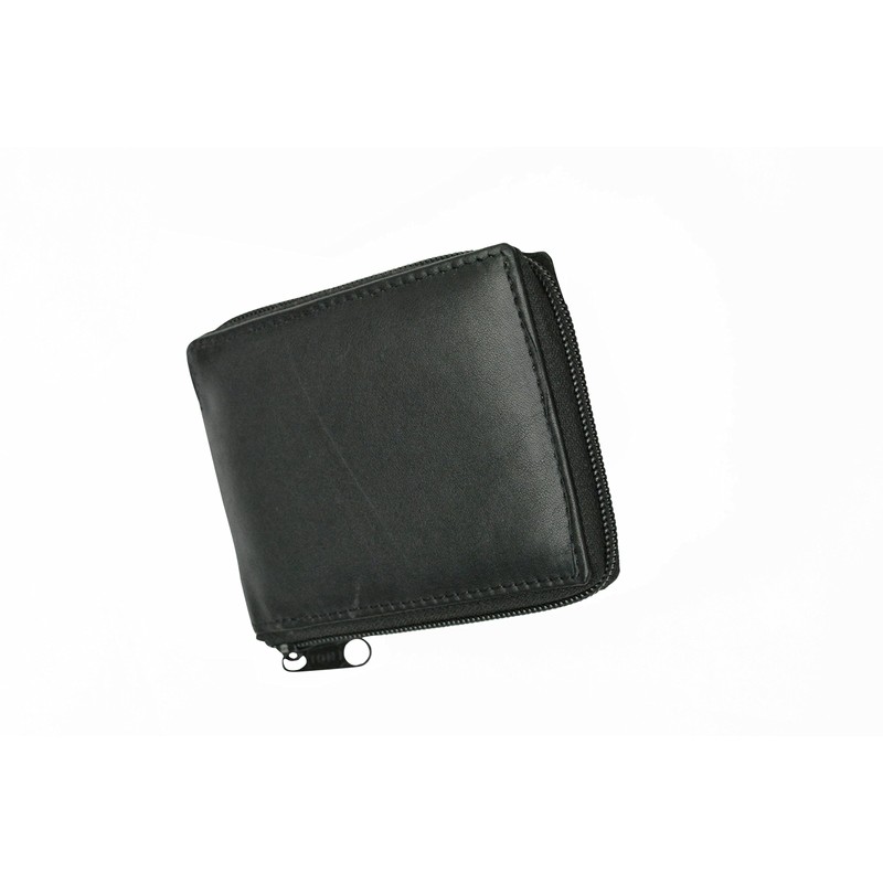 Marshal RFID Blocking Soft Premium Leather Zip-Around ID Bifold Wallet (Black)