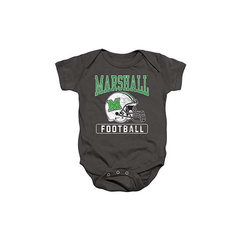 - MARSHALL UNIVERSITY OFFICIAL FOOTBALL HELMET UNISEX SNAP SUIT - Our unisex infant snap suit is constructed of 100% cotton with short-sleeves and is perfect for your baby girl or boy.