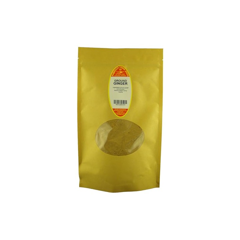 • 8 ounce resealable stand up pouch of Ground Ginger Ingredients: ground ginger root (powder)