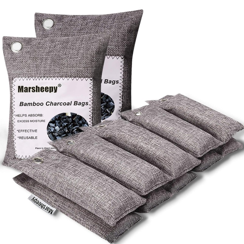 Marsheepy Activated Bamboo Charcoal Bags are an all-natural odor eliminator. Our Charcoal purifying bags come in a simplistic yet stunning design that will suit any interior aesthetic. They come with pre-installed holes so you can easily hang them anywhere around your home! The Car odor eliminator bags filled with activated charcoal will absorb odor from your shoes, shoe closet, gym bag, car, and refrigerator, drawer, sporting equipment, closet and pet litter box areas, It is an effective air purifier.