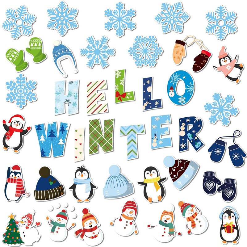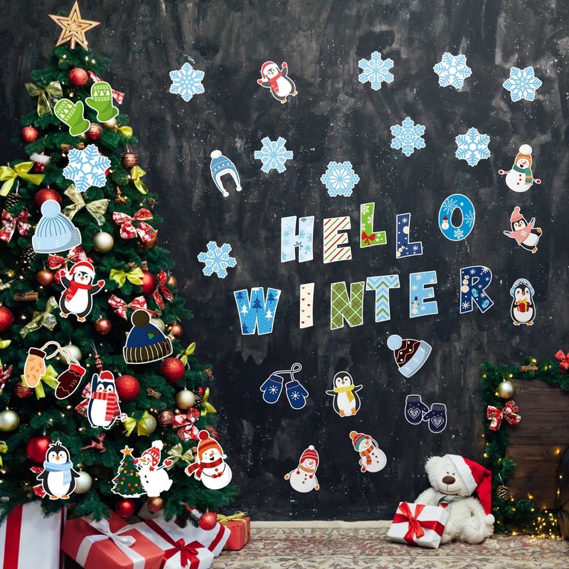 - Design: Christmas classroom bulletin border decorations have a variety of styles, like snowman cutouts, penguin cutouts, snowflake cutouts, gloves cutouts, hat cutouts, and [Hello Winter] Cutout, suitable for winter decorating classroom or home
