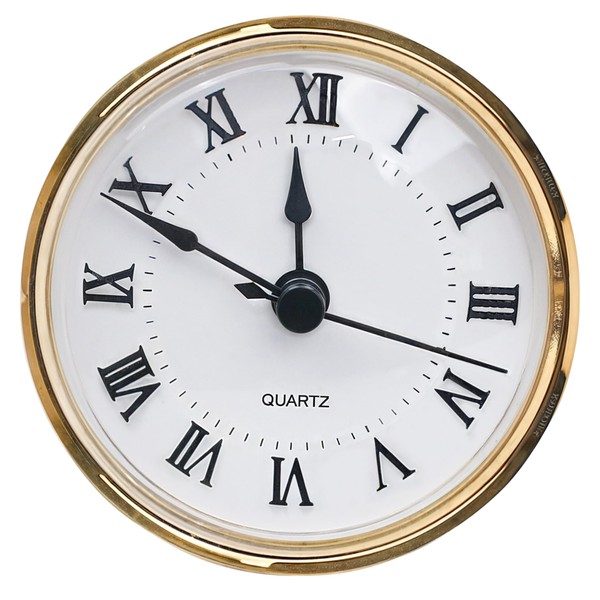 • Vintage Design: This unique quartz clock insert features gold-colored trim, black numerals, and clear plastic lens. Perfect for those looking for a classic clock!