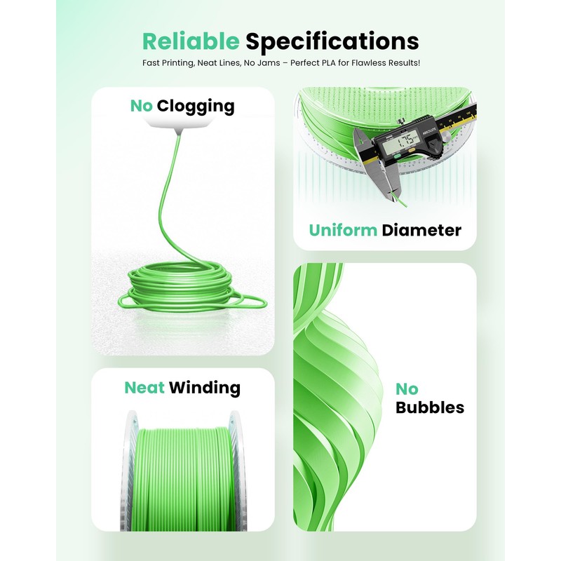 - Precise 1.75mm Diameter–Consistent and Tangle-Free Featuring a precision diameter of 1.75mm, our PLA+ filament ensures stable feeding and prevents tangling during 3D printing. Each roll undergoes strict quality checks, delivering reliable 3D filament that helps you achieve high-quality results. This PLA filament bundle is perfect for long printing sessions without the hassle of filament jams or inconsistent layers. smooth, uninterrupted printing with our precision-controlled PLA filament.
