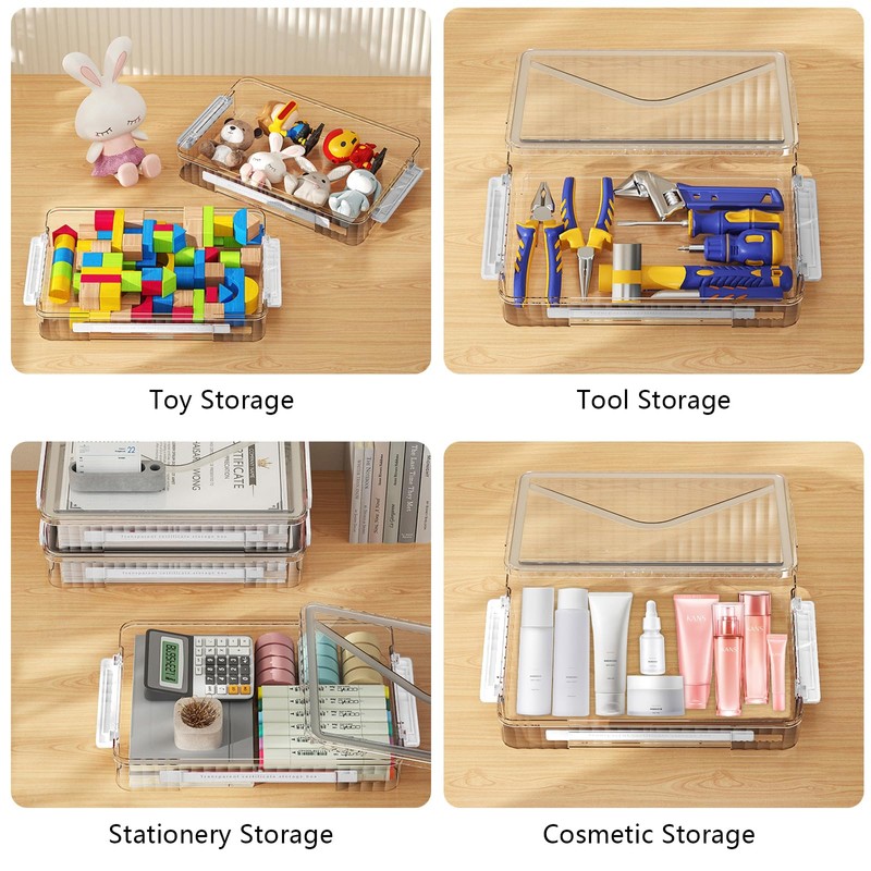 - 2️⃣Space-Saving Stackable Design--- This plastic storage box features a stackable design, which maximises your storage space and facilitates your classified storage. Great for keeping your space well organised.