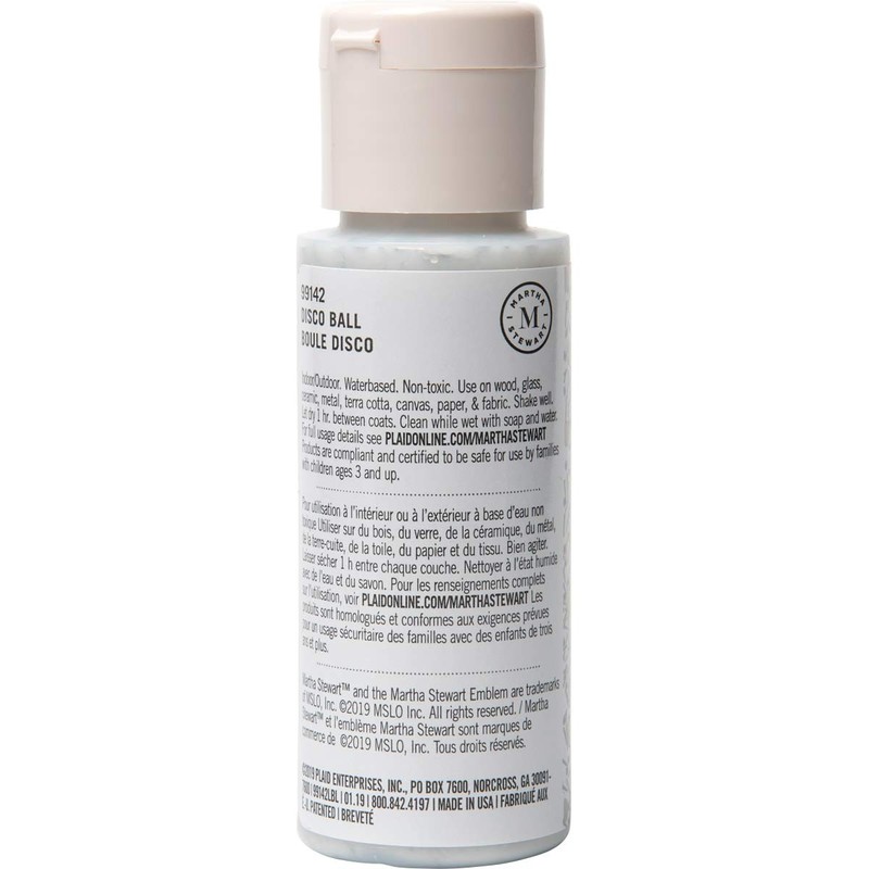 Martha Stewart Multi-Surface Confetti Glitter Acrylic Craft Paint is a high- performance premium acrylic paint that is specially formulated for use on all surfaces. The sparkly glitter particles are suspended in a milky white base that dries clear, making it the perfect topcoat for your craft painting and home decor projects. UV- and weather-resistant for indoor and outdoor use. Self-priming for use on porous and non-porous surfaces. Non-toxic; water- based; USA-made. CPSIA compliant; safe for use by families with children ages 3 and up. Paint dries to a soft, subtle sheen. 99142, Disco Ball - 2 oz.