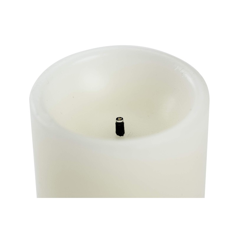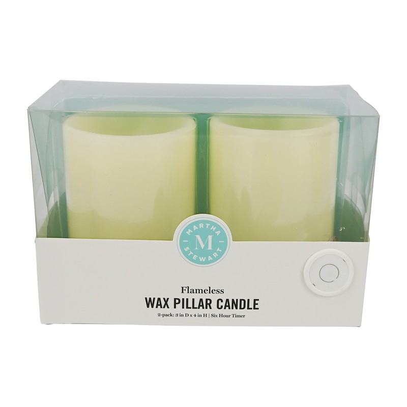 - Designed by Martha Stewart this set of two, 4 inch tall by 3 inch wide flameless pillar candles deliver a warm and realistic flickering white candlelight for all your decorating needs