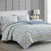 Martha Stewart Twin Size Quilt Bedding Set - 2 Piece, Soft Washed Microfiber, Printed Bedspread, Reversible, All Season, 1 Quilt, 1 Standard Pillow Sham, Blue & Gray, Medallion Print