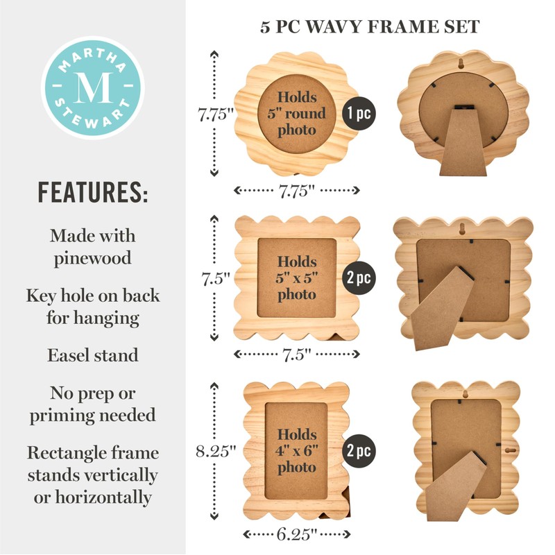 Martha Stewart, Wavy Wood Frame Set, 5 pcs