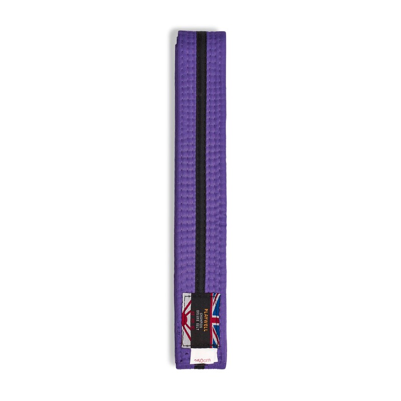 Martial Arts Cotton Coloured Belt With Black Stripe Grading Belt - (Karate, Judo Taekwondo) (Purple Belt with Black Stripe, 250cm)