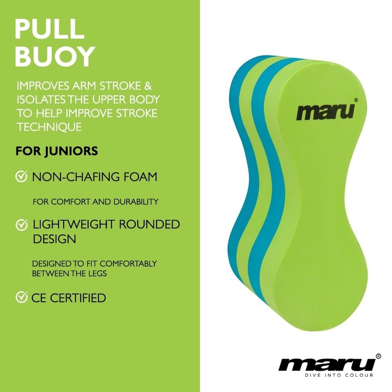 Maru Swimming Pull Buoy Float Junior Swimming Aid Equipment for Stength Training, Pool use, Made of Foam, Leg Float, Provides Comfort and Buoyancy (Lime/Blue, Youth)