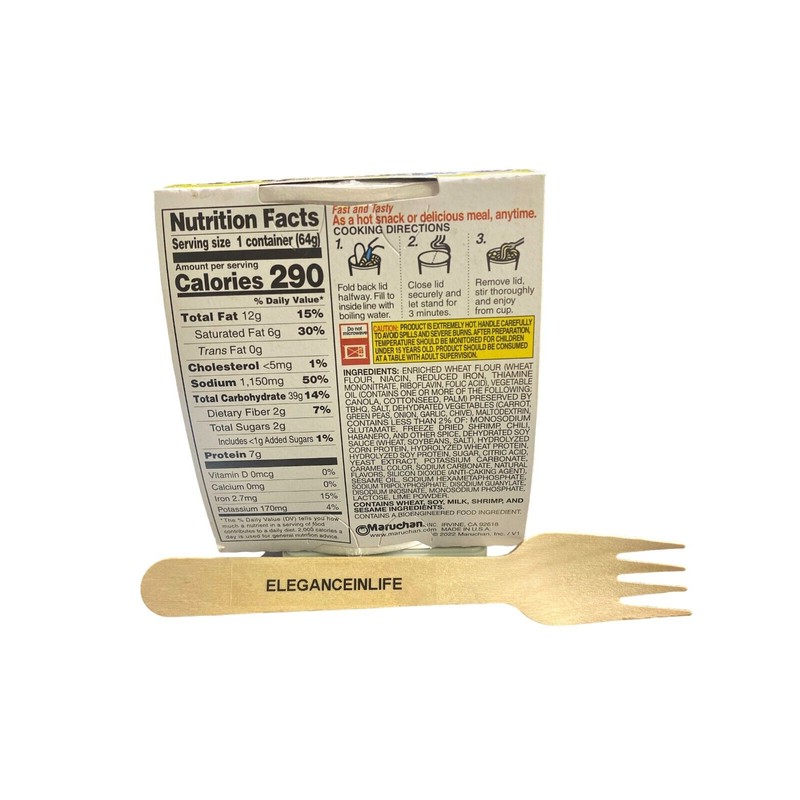 Maruchan Instant Lunch Hot & Spicy Lime Chili Flavor with Shrimp Ramen Noodle Soup 2.25 oz With Eleganceinlife Wooden Fork Pack of 2