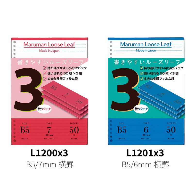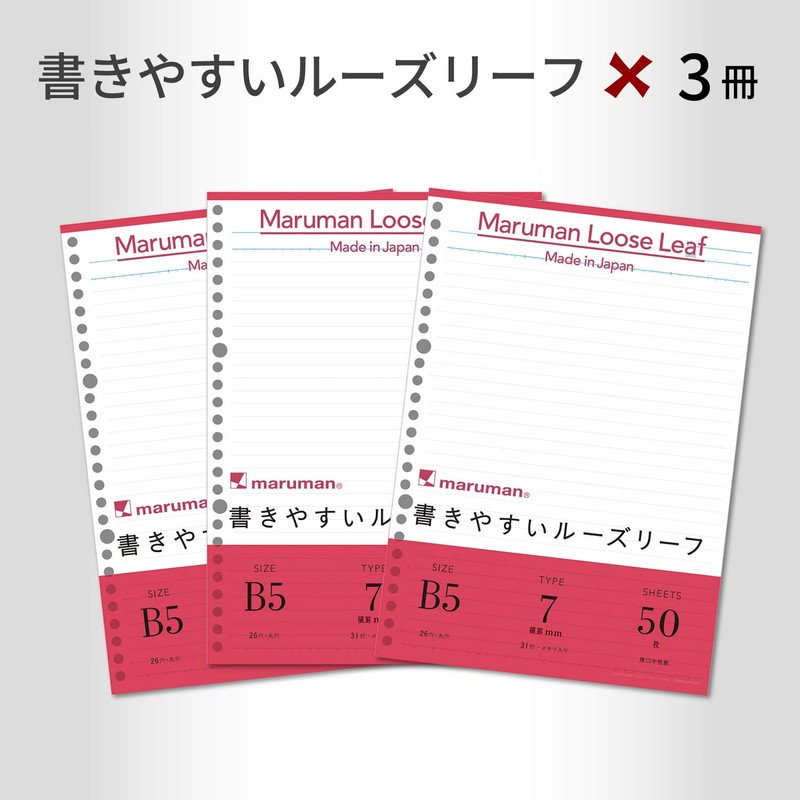 Maruman Loose Leaf B5, Horizontal Rule, 0.3 inches (7 mm), 50 Sheets Set, L1200x3