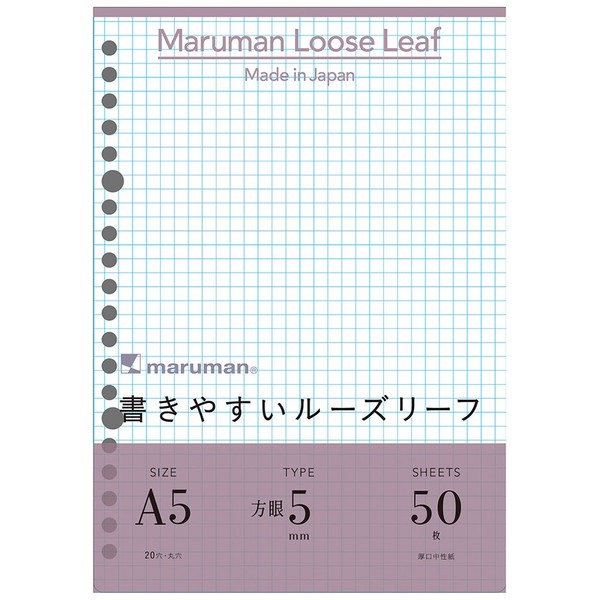 - Loose leaf with 0.2 inch (5 mm) grid ruled for easy use in school and business settings