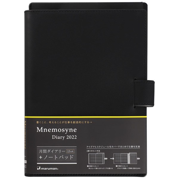 Maruman MNEMOSYNE Monthly Diary 2022 MND283-22 + Notepad N188A (5mm squared) with a stylish & durable Black PVC Cover, 1 ea (MNDP-22-05)