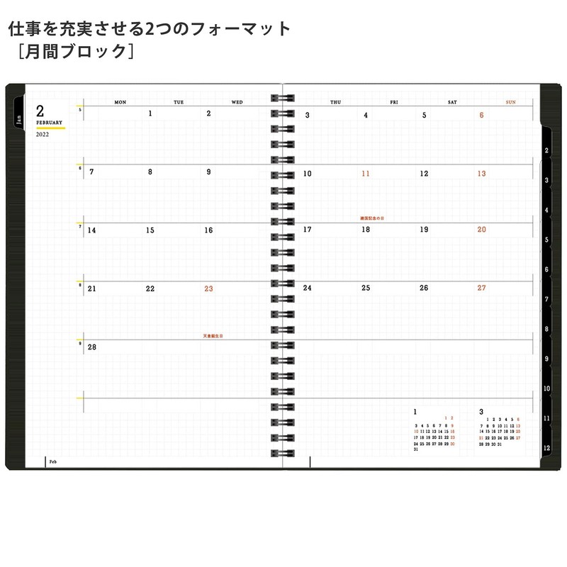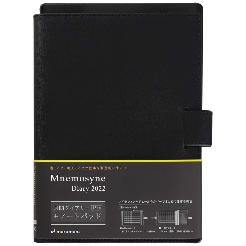 • Mnemosyne monthly diary 2022 and a square grid A5 notepad (N188A) are combined together into a stylish and durable PVC black cover