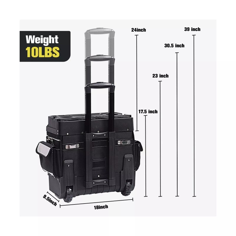 - Excellent Material: The tool bag is made of waterproof and puncture-proof 1680D Oxford cloth, and is also equipped with wear-resistant wheels, stainless steel locking buckle, and a sturdy ABS hardtop and base, which is a great companion for outdoor work