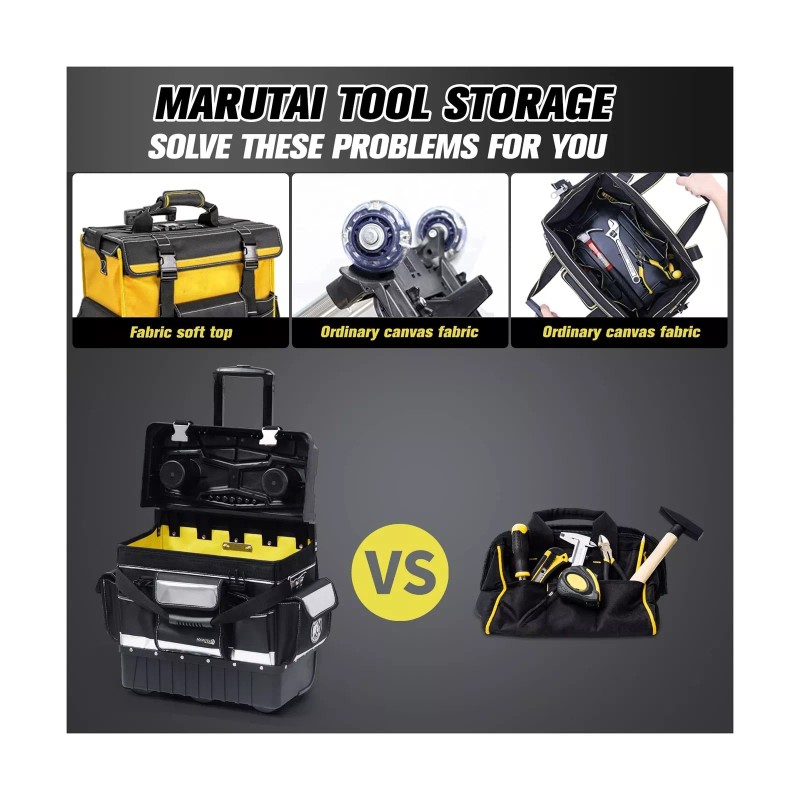 MARUTAI 18'' Rolling Tool Bag with Wheels, Tool Bags Organizer, with Telescopic Handle and Waterproof Cover, 330lbs Load Rated, Storage Manager Toolbox for Camping, Construction Sites
