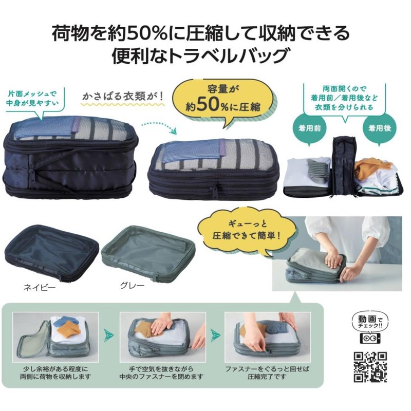 Marutatsu Compression Bag for Travel, Convenient Travel Goods, Open Both Sides, Large Capacity, Holds 50% Compression, Gray or Navy
