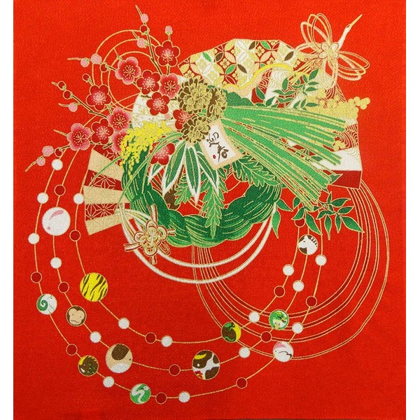 Maruten Furoshiki Crepe Inner Width New Year's Decoration, Approx. 18.9 x 18.9 inches (48 x 48 cm)
