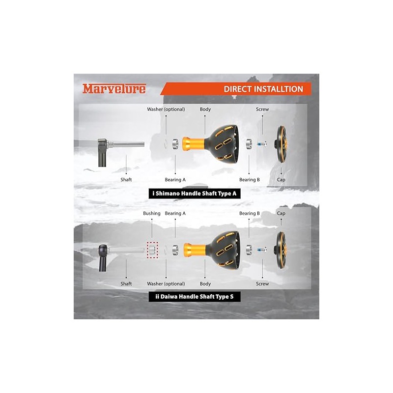 - [Perfect Fit] Each power knob comes with two solid Japanese NMB stainless steel bearings for smooth rotation. An aluminum bushing is included to ensure compatibility with Daiwa fishing reel handles, along with three sizes of washers to guarantee an ideal fit on your reel.