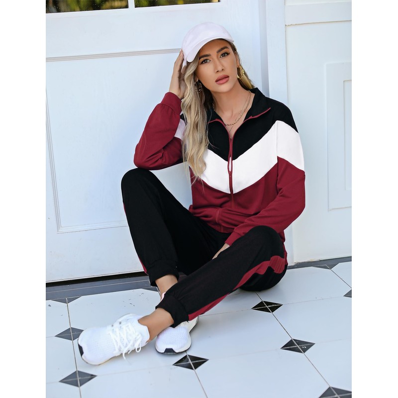 - FASHION DESIGN: Trending color block full zip jacket top, chic mock turtleneck design let you really snuggle into it in windy day. Side striped elastic waistband jogger sweatpants with a adjustable drawstring, it also have 2 pockets that very cozy and convenient to put small accessories or your mobile phone