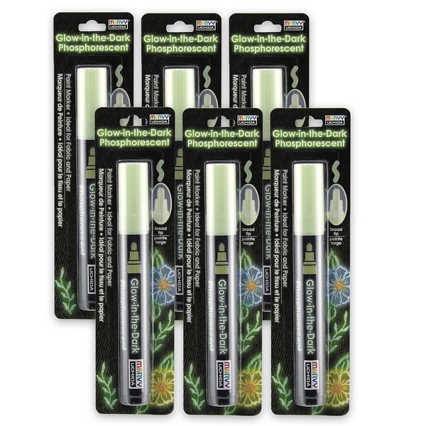 Marvy Uchida Green Glow in The Dark Fabric Marker, Pack of 6, 6 Count
