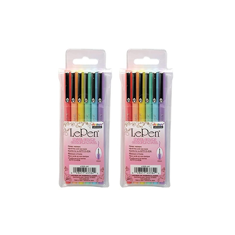 Marvy Uchida LePen Micro-Fine Point Pen, Pastel, 6 Per Pack, 2 Packs