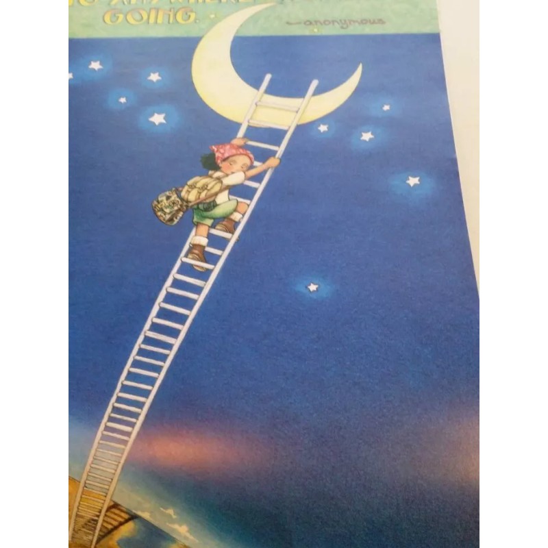 10 3/4" x 13" unframed no border. Excellent reproduction. Very high quality inks. Each work of art is on the backside of a calendar month. There is a hole at the top because it is from a calendar. Originally from her 2009 Calendar, On the Edge. Beautifully rendered illustration with adorable famous quote. Have it matted and framed and hang.