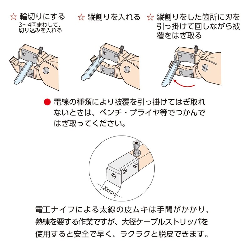 • Shedding capacity range: outer diameter 1.0 inch (25 mm) or less, core wire diameter 0.3 inch (8 mm) or higher