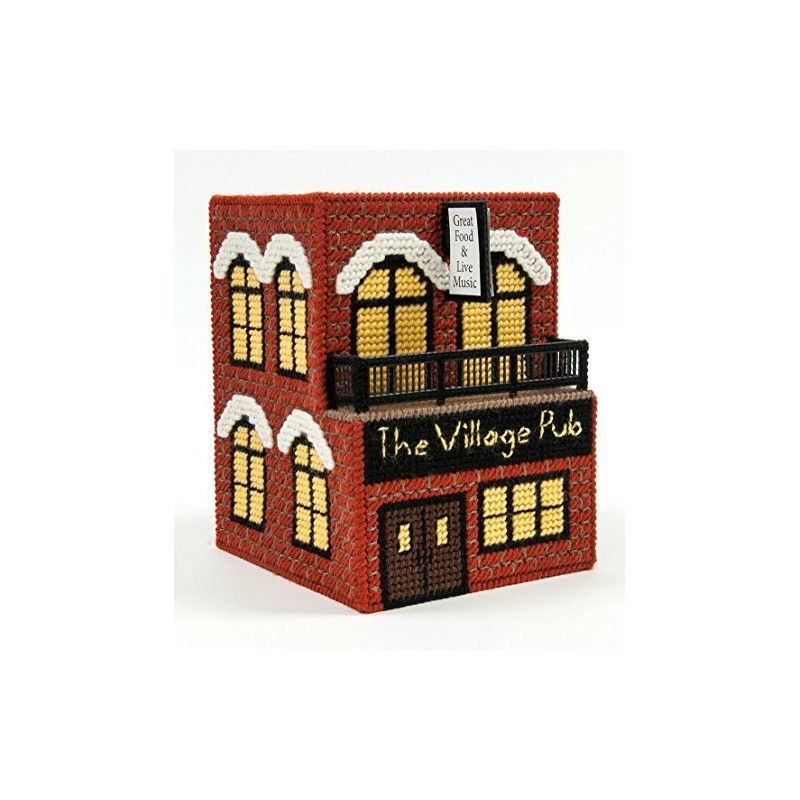 Add a festive touch to your holiday village with this charming Village Pub! A fun and creative plastic canvas project for the season.