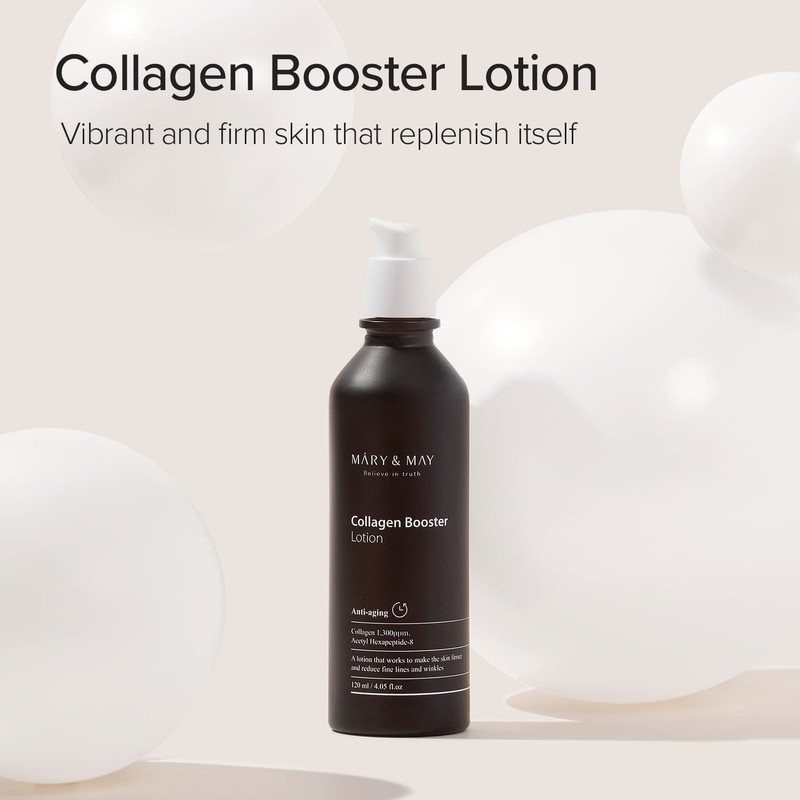 • Mary & May Collagen Booster Lotion is a formula that improves fundamental skin aging concerns, with acetyl hexapeptide that promote collagen to self-regenerate and a complex of plant component that imitates 22-years-old healthy skin lipids.
