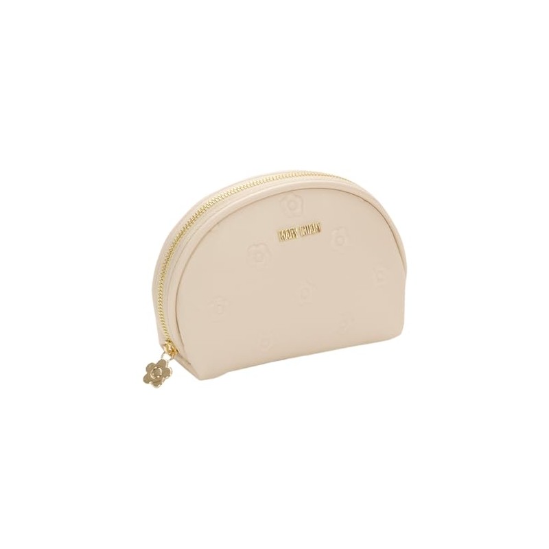 MARY QUANT Simple Embossed Daisy Round Pouch H 3.9 x W 5.9 x D 2.0 inches (10 x 15 x 5 cm), Beige