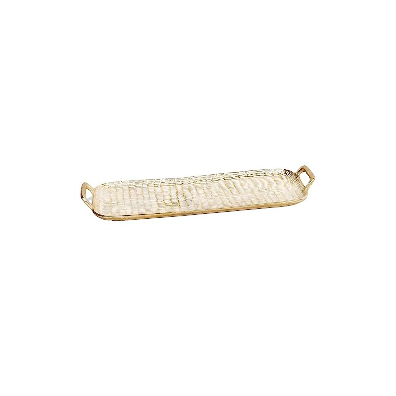 Mary Square 47358 Gold and White Rectangular Medium 22 x 7 Aluminum Decorative Serving Tray with Handles