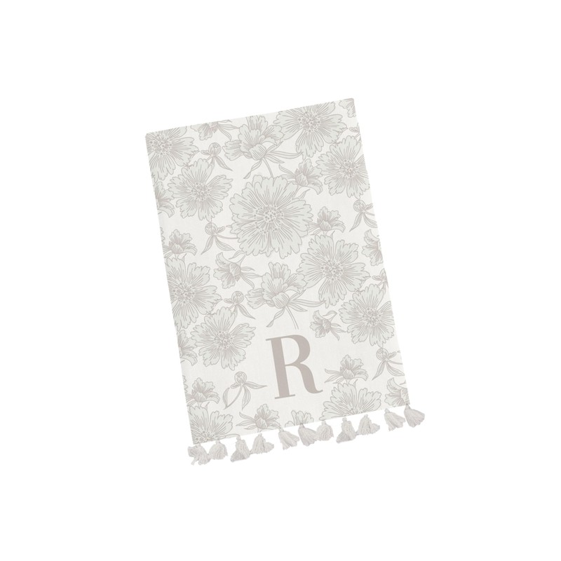 Mary Square Monogram R Colorful Floral 26 x 18 Cotton Fabric Tea Hand Towel with Tasseled Edges