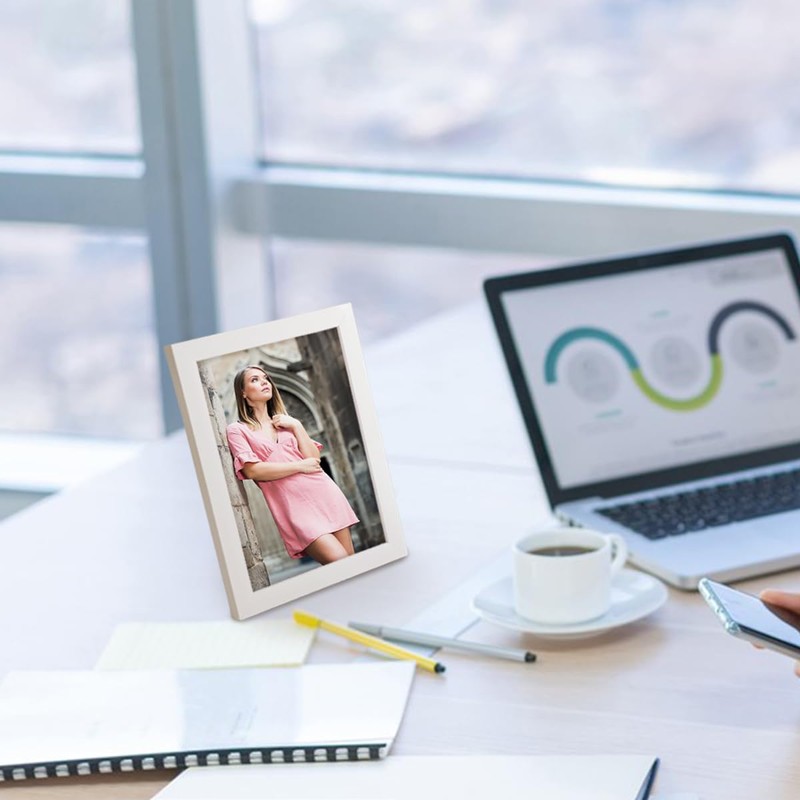 - 🖼 Minimalistic Design: 8x10 photo frame. This photo frame has a crisp, clean display and a jam-free design. This jam-free design ensures that your photos are the centre of attention. The simple colours are versatile and premium.