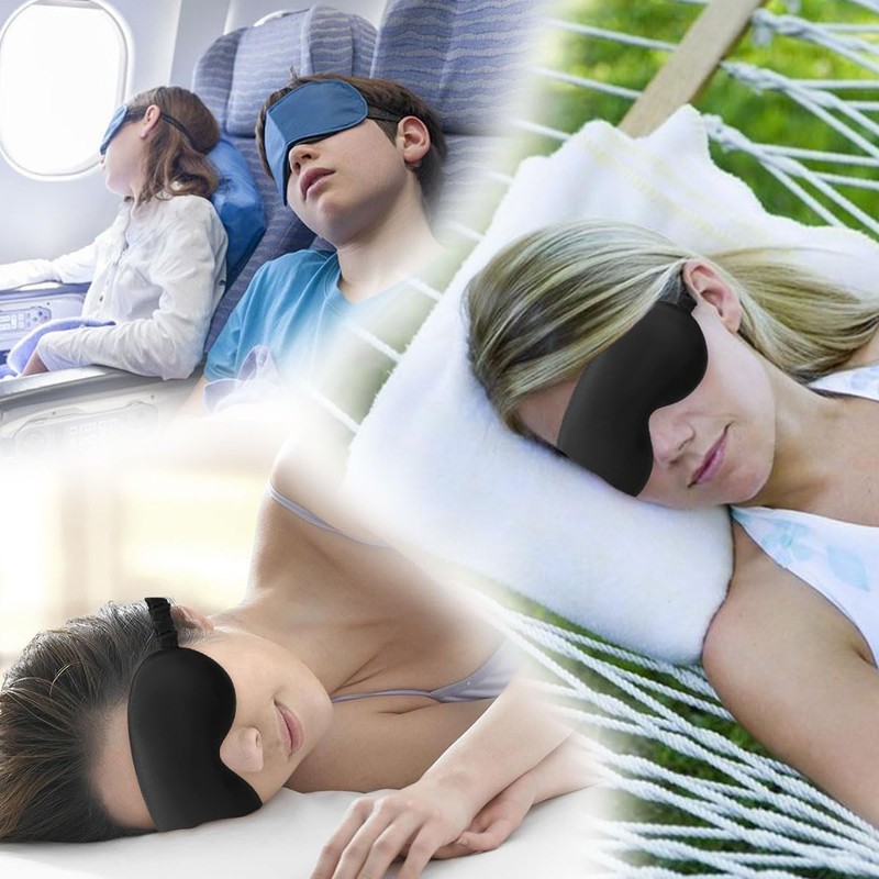 - Shading Effect--- Eye masks. It can fit your eyes and face to the maximum extent possible based on your face. The larger size can better block the light around your eyes, allowing you to spend a happy night or travel for sleep.