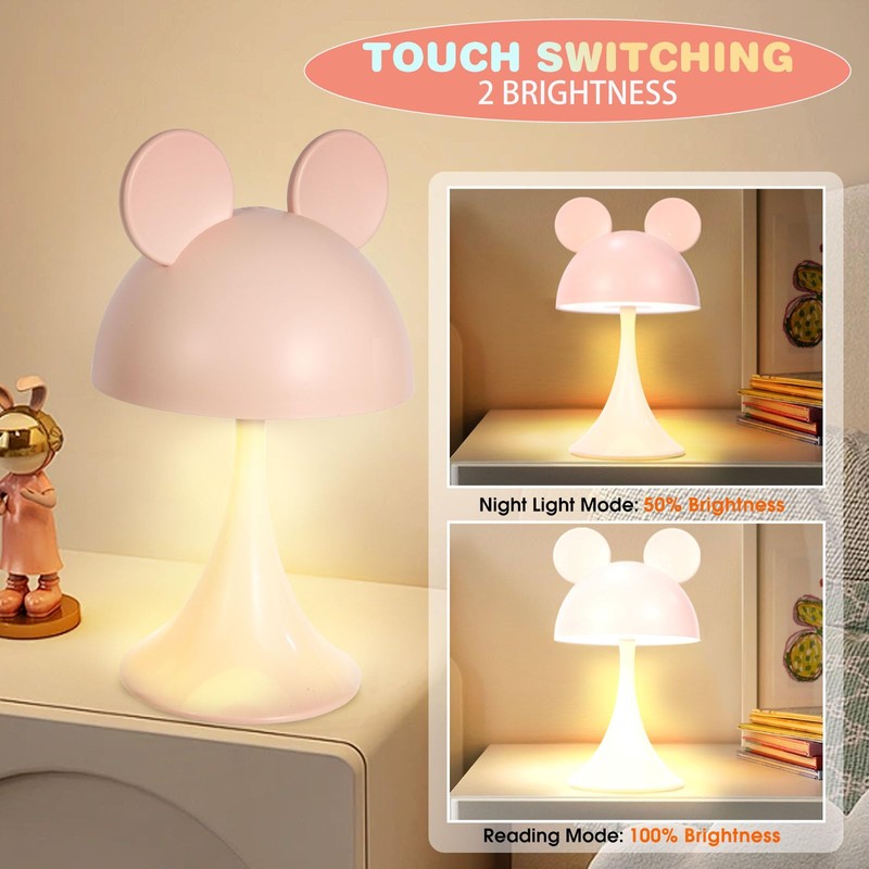 MARZIUS Rechargeable Mouse Shape LED Dimmable Touch Desk Lamp Reading Night Light Cute Bedside Lamp (Pink)