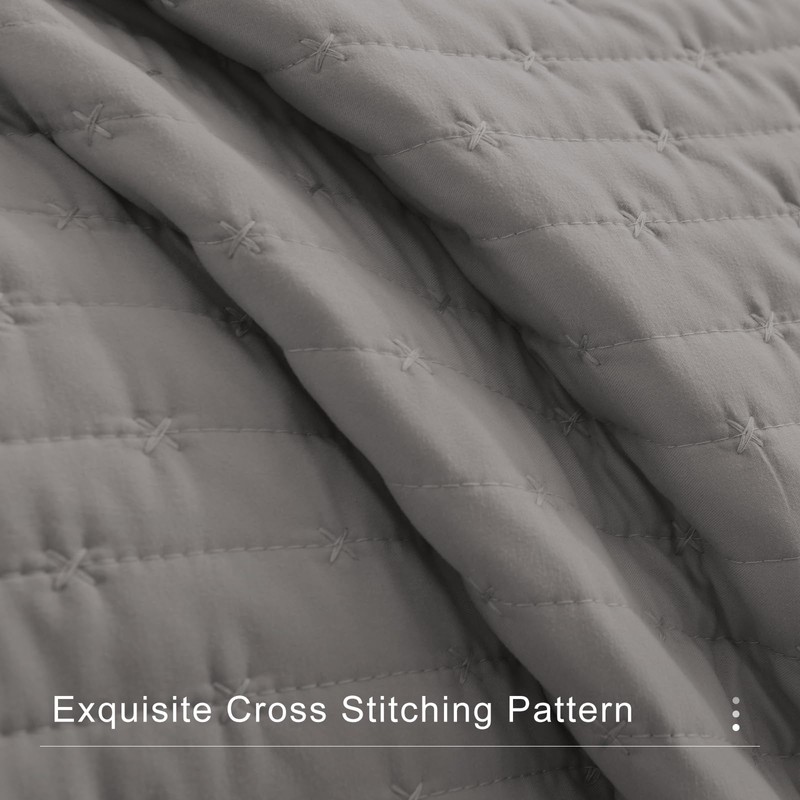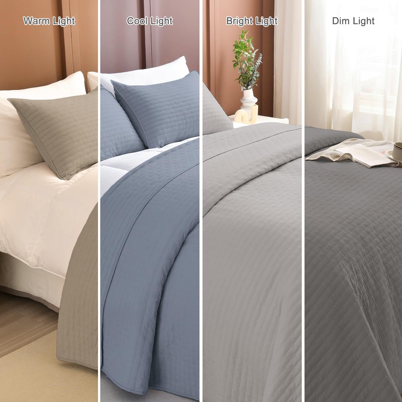 - 【Premium Bed Quilt for All Season】 This solid color oversized queen size quilt is covered by 100% high-quality polyester, very soft, comfortable and breathable, providing exceptional warmth. Our grey quilt bedding set is washed for lived-in softness, which is more softer after washing. Keeping you comfortable all night.